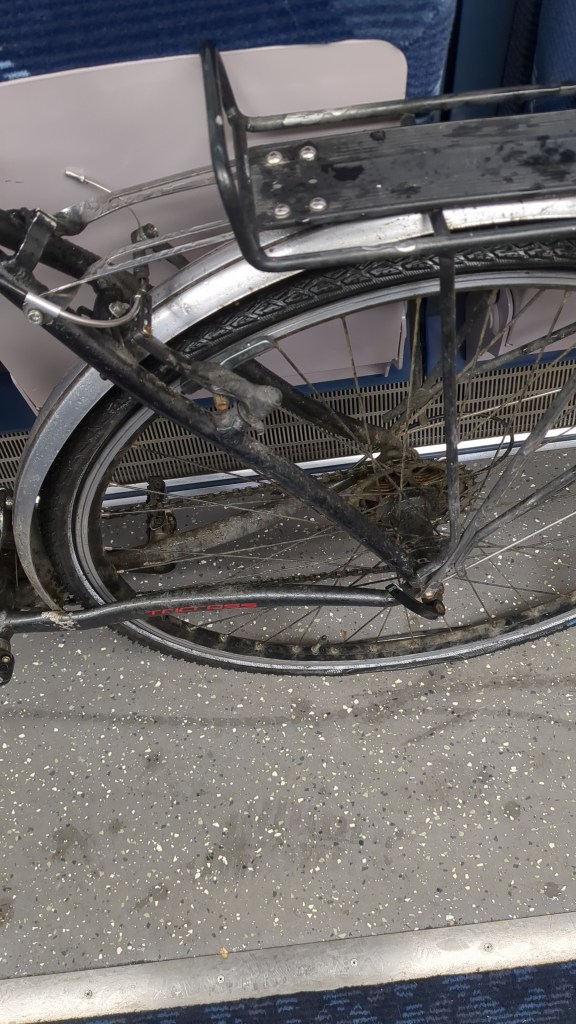 A fraught puncture-jog to station with the Trusty Stead while Jon wraps up work and that is us off to Newcastle via Edinburgh. Cold pizza from The Bakery and birthday Toblerone on the train then we weave through the St Patrick’s day Newcastle revellers at midnight. Hot choc in hotel.