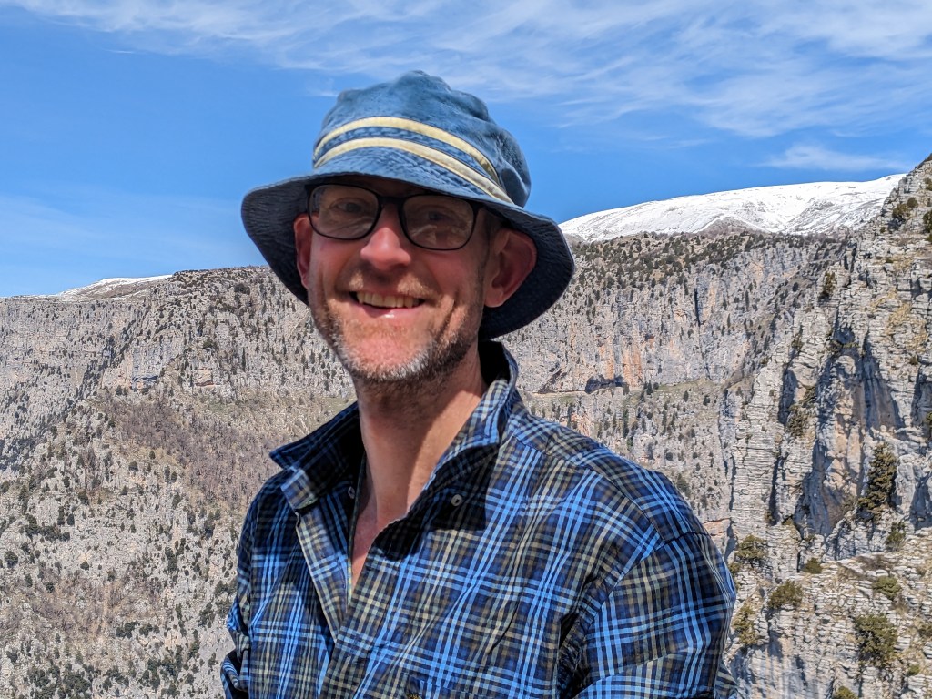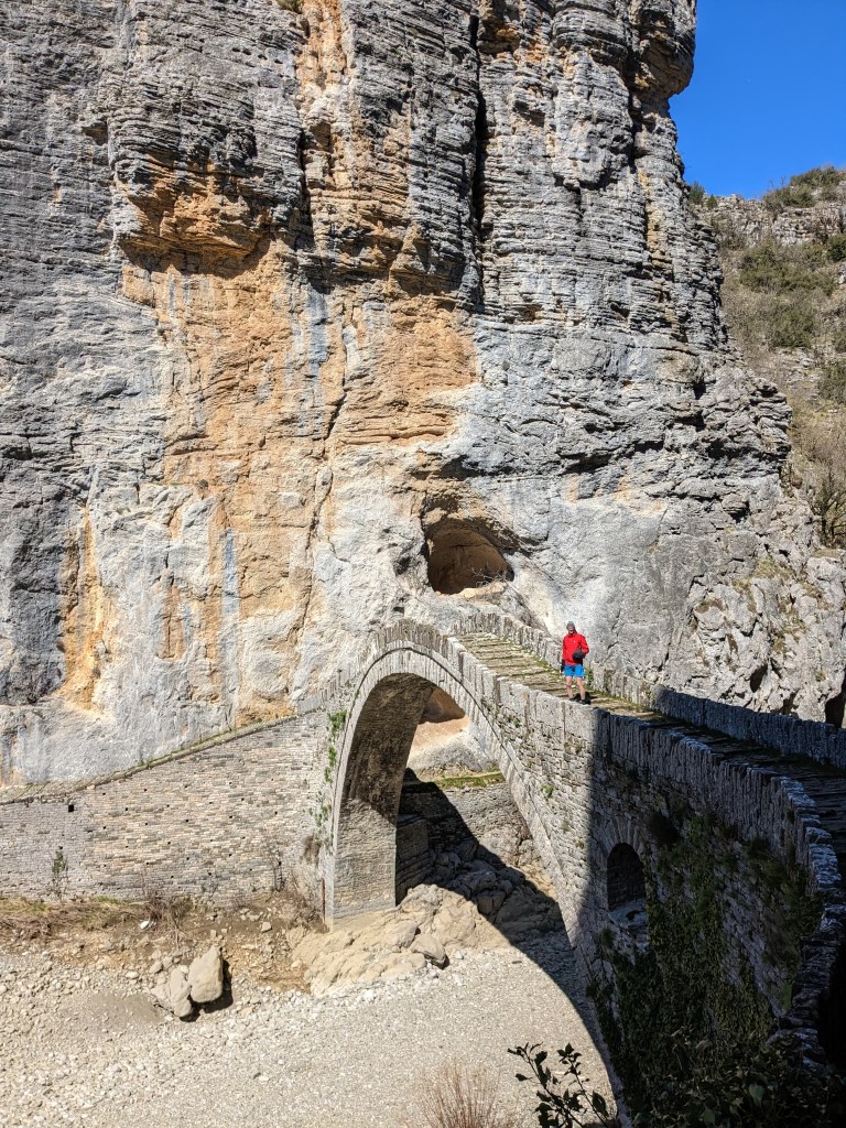 We cycle to Kapesovo and walk the Vraditsa steps to the lookout at Beloi over the Vikos gorge and have picnic a SAFE distance from the vertiginous edge and coffee on our way down chatting to an Austrian couple and their dog.