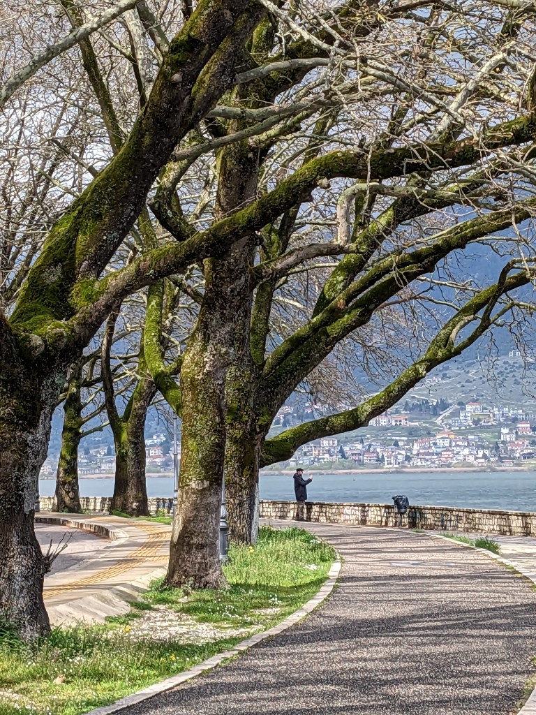Ioannina stunning setting thriving university city feel. Nice Greek student we speak to finds it very coooold. She was from Patras.