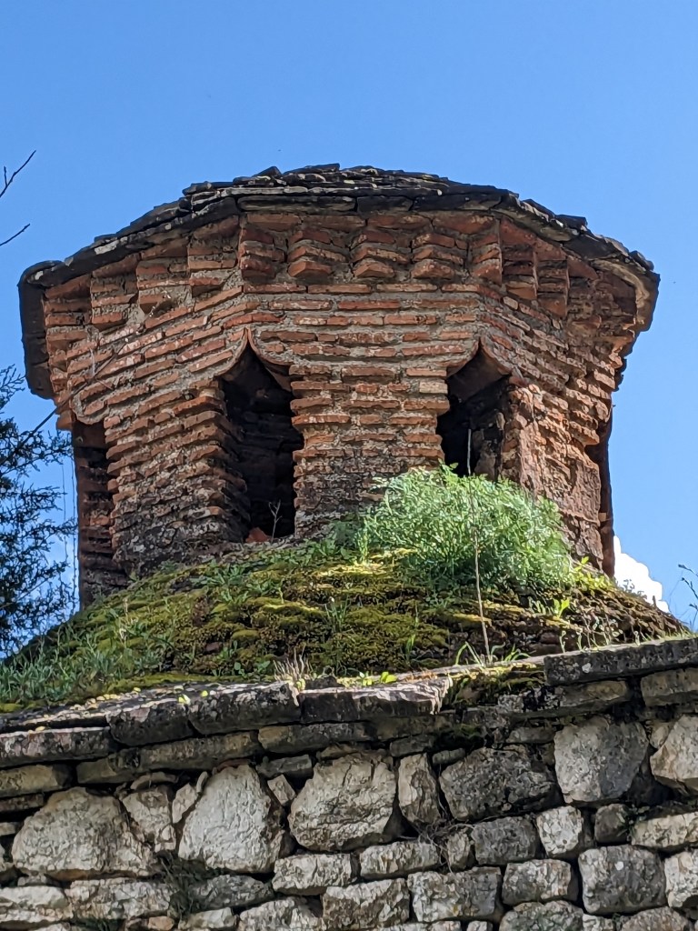 Then on our final climb before Ioannina and I totally bonk (cycling parlance, not rude, just means you totally run out of juice). I sit on the edge of the road and Jon feeds me large volumes of pitta and cheese until the legs work again. We cycle through a real causse landscape like some of the Larzac – scruffy rocky quarries rusty stuff, hillbilly land. Then finally over the hill to a majestic view of Ioannina and the lake. A brake shuddering descent of hairpins into the outskirts. Nice old boy on his bike with dyed hair (ancient lothario) has the lovely no-shared-language chat and then we zoom into town right into the very old quarter by the waterfront – huge odd city walls, Ottoman buildings (our first mosque) and what feels like ancient thriving trading (silverware shops, hand made knives shop, bakers bakers bakers candlestick makers).