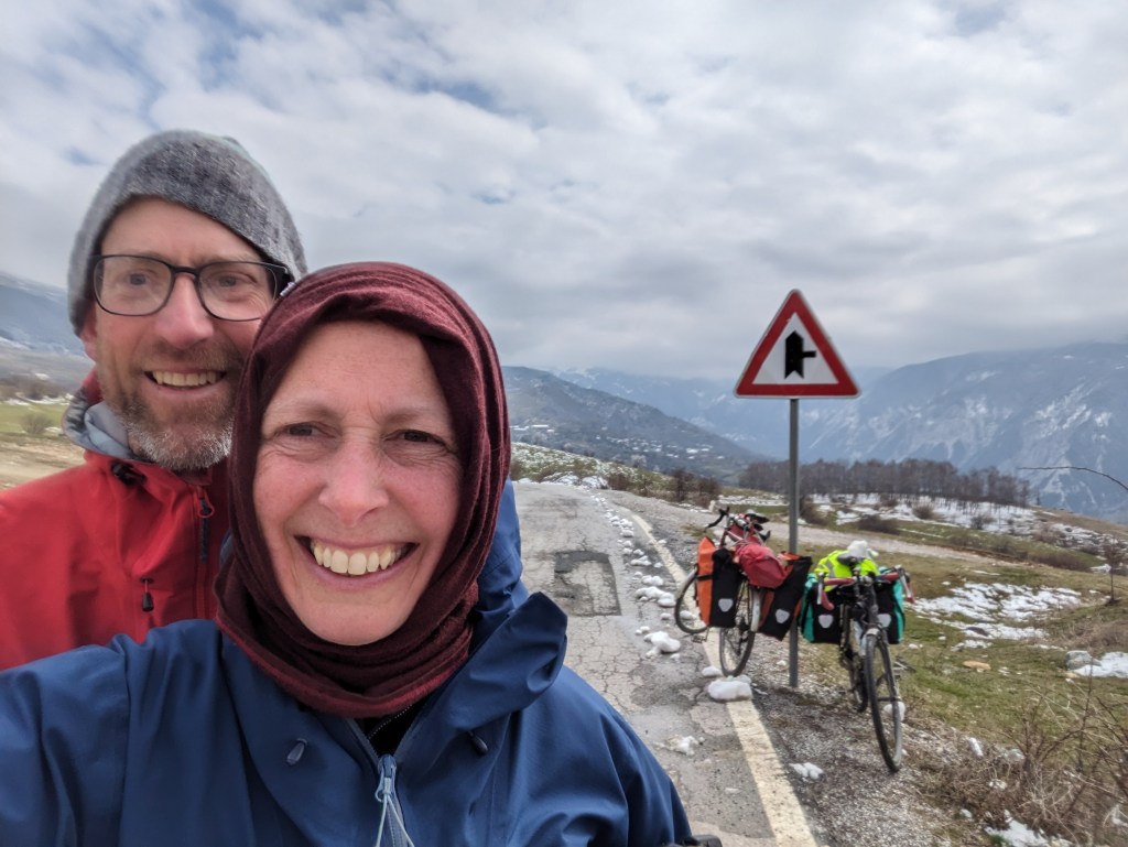 After a COLD start in the snow in Macedonia, we cross the border after Debar – another fast ‘n friendly crossing with us now feeling like old Albanian hands with our greetings down to pat. Neither of us really sure anyone understands us but our merriness is seeming to rub off.