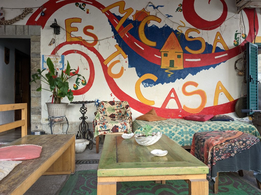 Then it’s suddenly the flat lands and vines, figs and some citrus, less and less rubbish, and increasingly wealthier. We cruise behind a teenage Roma scrap metal motor rickshaw driver into the very lovely town of Shkoder and decide to spend two nights in the equally lovely Mi casa es Tu Casa hostel run by Alma, an exceptionally nice lady. Her house, which was the early photographer Marubi’s house for a time, is stuffed full of her lovely belongings and paintings. We chat a lot, about the world, and the Youth, and May 68, and dogs and travellers all blend into the sofa and the scenery and tuck up in front of her wood burning stove. She gives us some of her olives and we give her a cake that reminds her of her childhood as it’s an old local recipe and her dad used to buy her one every week: “you’ve given me a commotion” she movingly says, all teared up. She has lost two husbands and gives you the sense of a woman well loved and who has loved well and now beams that love on her rescue dogs and her travellers.