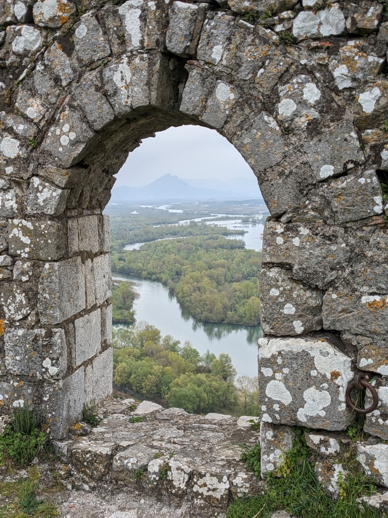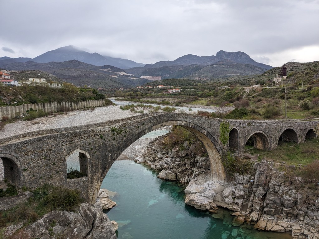 Shkoder has lovely old Italianate buildings, a really good museum of photography, another few museums sadly shut on this Easter weekend, an amazing old fortress and the shores of the exception lovely lake Shkroder nearby. Everything is green and lush as we cycle out to an old Ottoman bridge nearby through fields and orchards and cows and horses. We eat very well especially in a fast food joint where we meet cyclist #6 from Cheltenham. The ice cream in this city is also very very good.