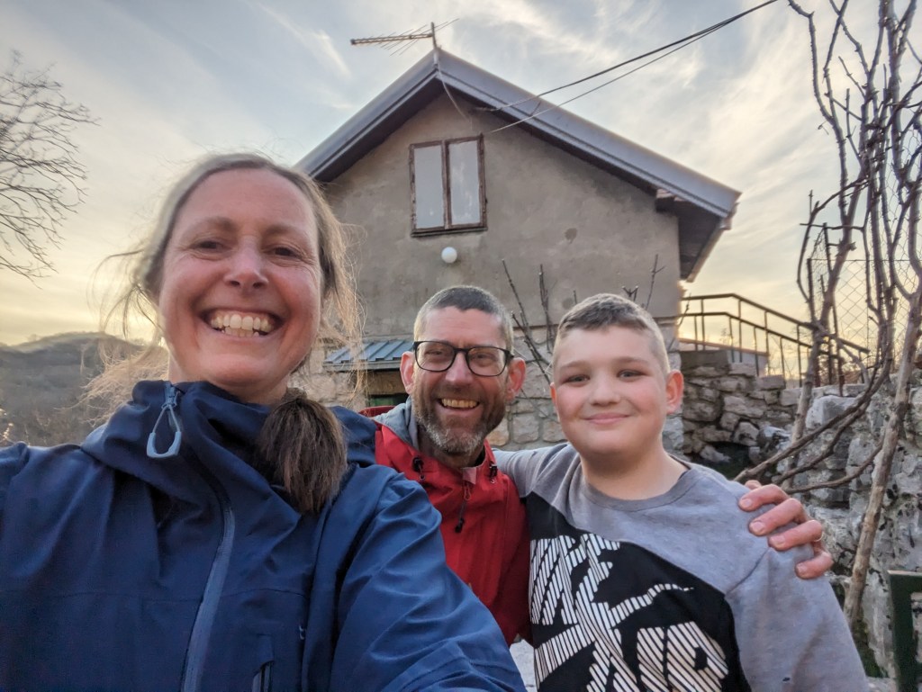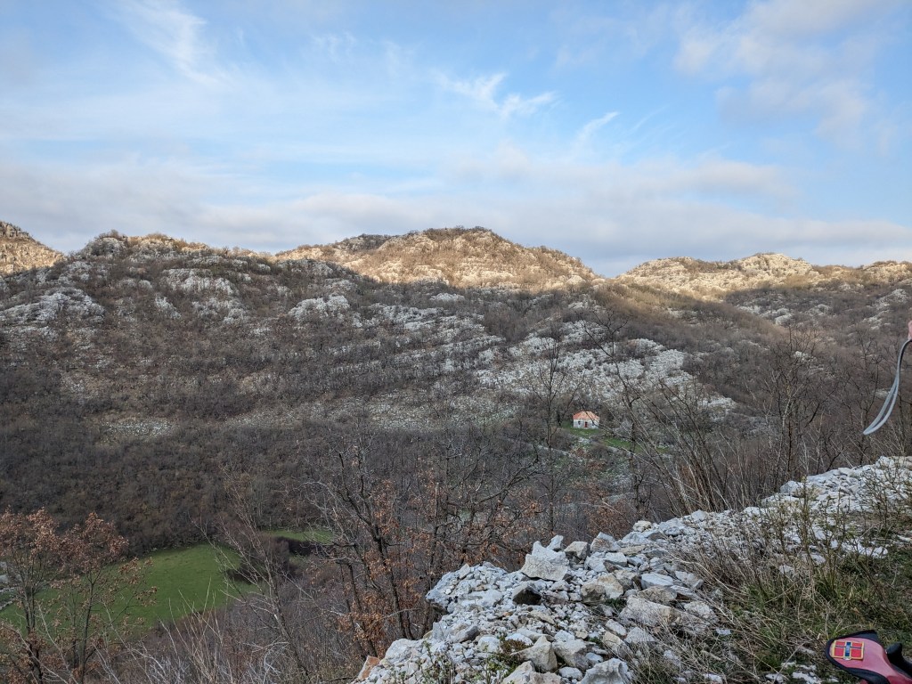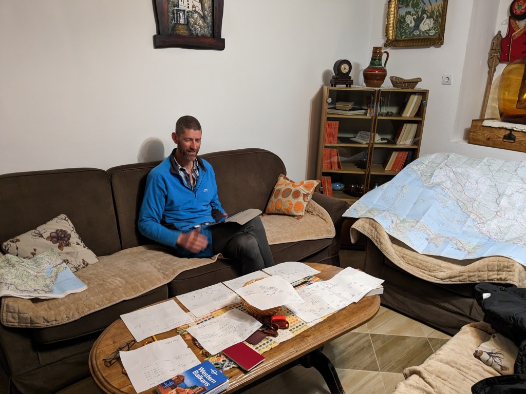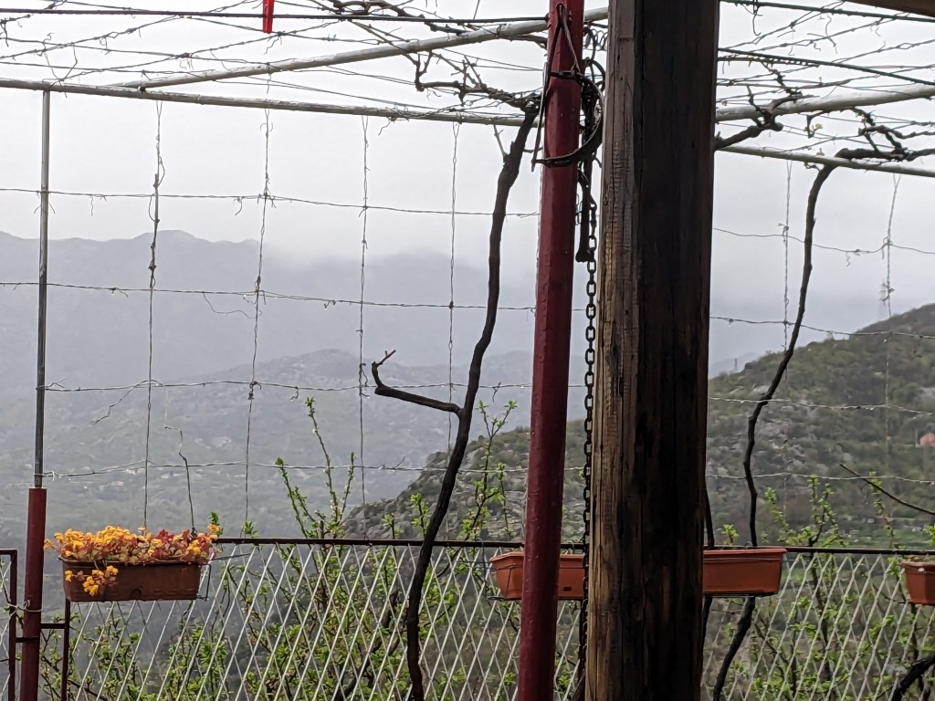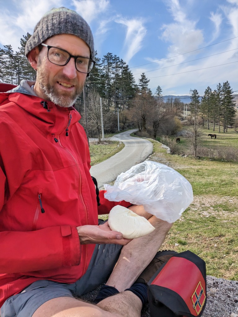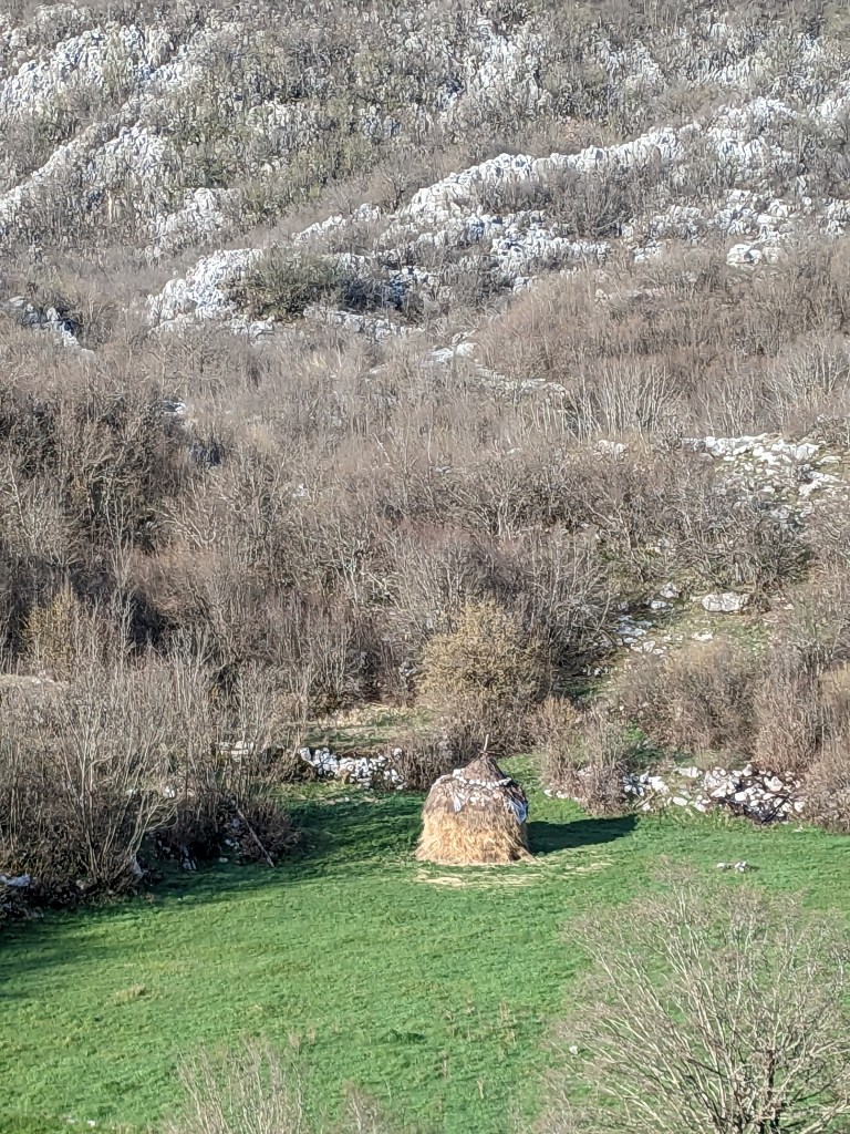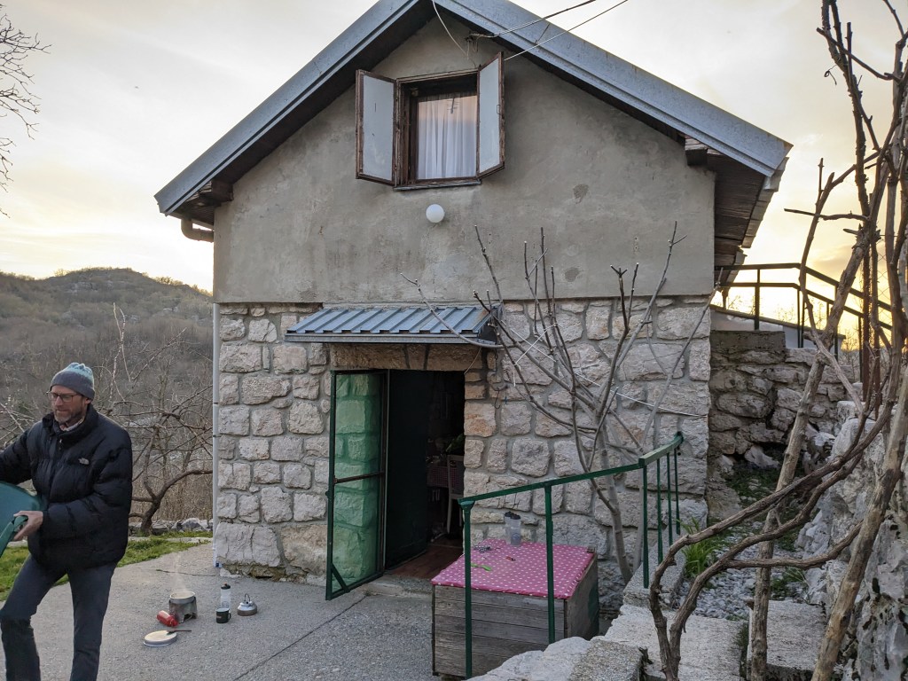 The airy view down into the valley is one we keep for two days as we stay in a lovely place a few miles down the road to sit out what is predicted to be cataclysmic rain. Instead, it drizzles, a lot. Mallia the boss spoils us with priglanica doughnuts at dawn and home made plum jam. Her side kick lights our stove. We venture up the road for food but otherwise just rest up and read and chat to the boss lady, and plot the next step.