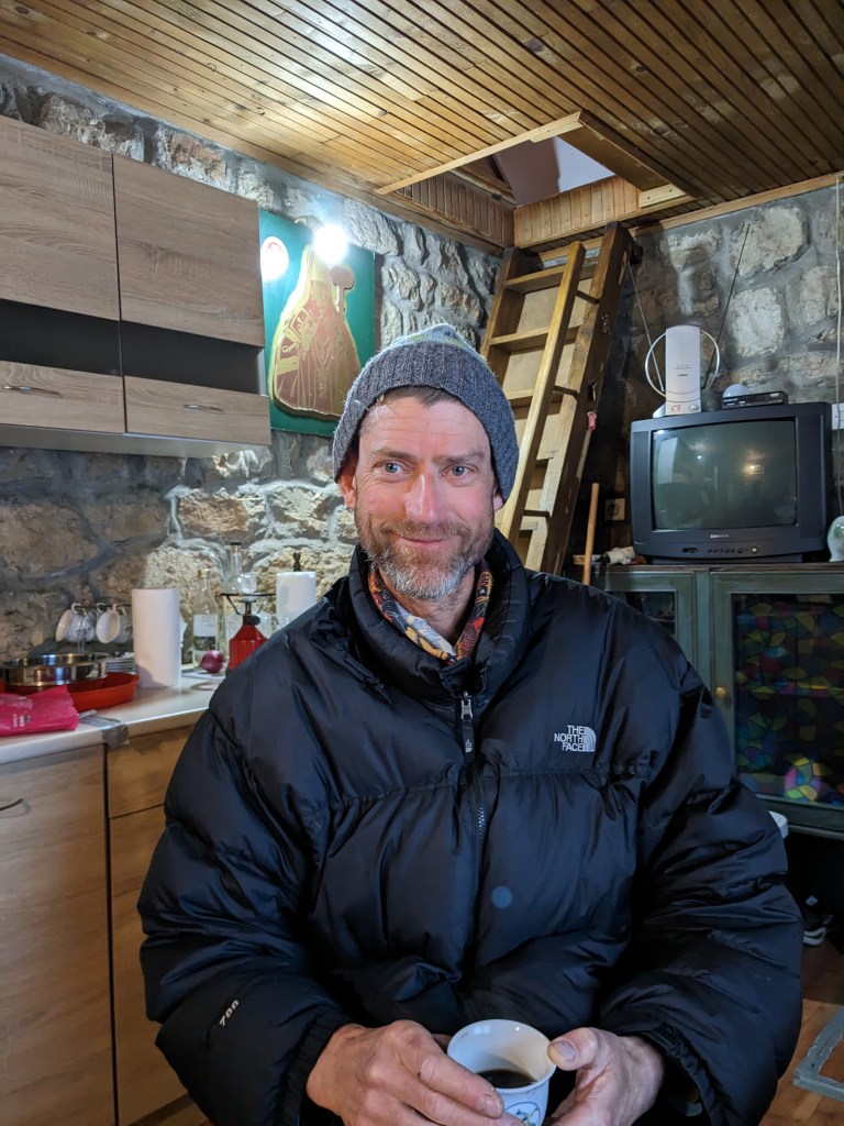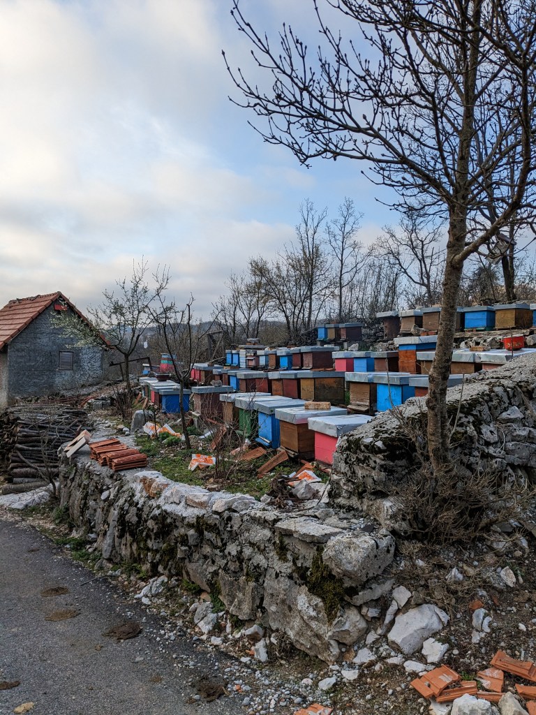 The day is moving on and it’s nearing 7. We hadn’t stocked up on water and our camping mojo is shrinking. Being karst country there aren’t really streams. We spot a settlement that we recognise from Internet research earlier as possibly renting out rooms but cause total commotion when we ask the main man who speaks no English. He bellows for “Boy!” who turns out to be Boris, a sharp 12 year old with a finely attuned sense of business. After 5 minutes of negotiation he absolutely roasts us (we are totally rubbish at haggling) but his mum obviously felt very embarrassed as she appeared with a home made delicious cheese, and Boris was no doubt read the riot act for fleecing the tourists as he then appears with pancakes he made us, dripping in his dad’s honey. All round an excellent place and everyone happy with the deal. It’s cosy on this cold night sleeping in what would have been the hayloft through a trap door.