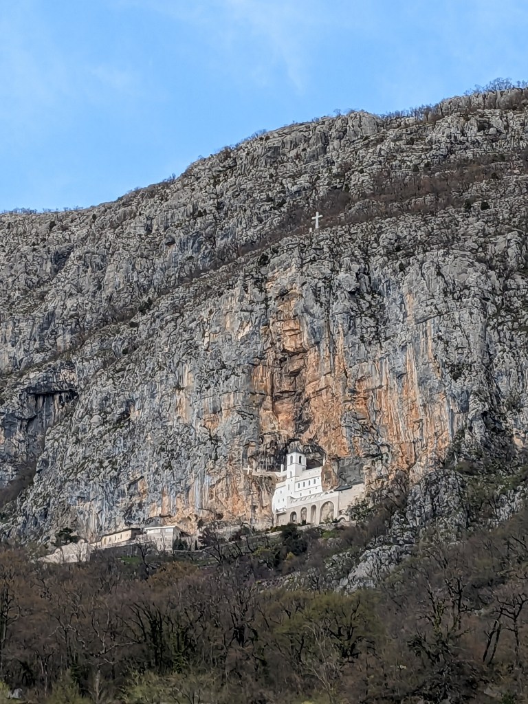 There we refuel and more climbing then hits us up to Ostrog monastery. My legs very much no longer feel strong. Anything above 5% climb just about does me in.