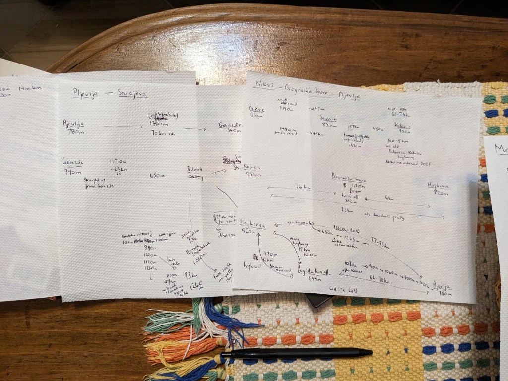 Decision time for route: we both feel a bit fried from multiple daily 1000+m of ascent and decide to head to Bosnia for a change of scenery – not that Bosnia is any less mountainous but the lure of a cycle path on an old railway line wins the day. We had wanted to go to Biogrask national park where there are remnants of ancient forest but 1. the leaves aren’t out yet and 2. it’s snowed a lot on higher ground and that park is high. Durmitor for the same reason is a no go – too much snow.