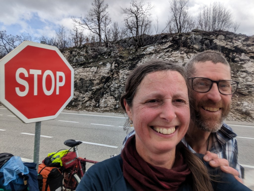 We shed still-wet-from-swimming, wet-from-sweat layers and I celebrate being back into remote empty land by cycling topless for 15 meters while Jon rolls his eyeballs. Not sure the sight of my saggy 50 year old boobies wouldn’t kill any passer-by stone dead but I take that risk and find it very liberating.