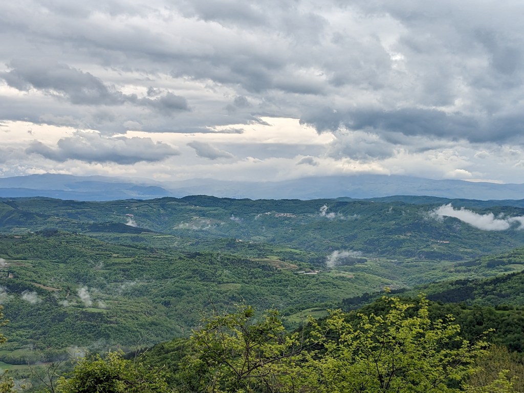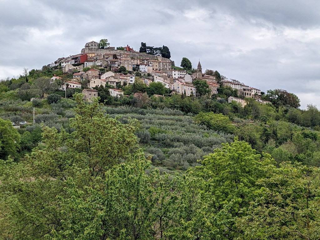 Then it’s off to pretty Motovun via some Greek standard very steep gradients up and down and my back tyre finally punctures properly on a descent. Thankfully for some unknown reason I wasn’t going at my usual swift downhill pace and so averted a Domestic Accident.