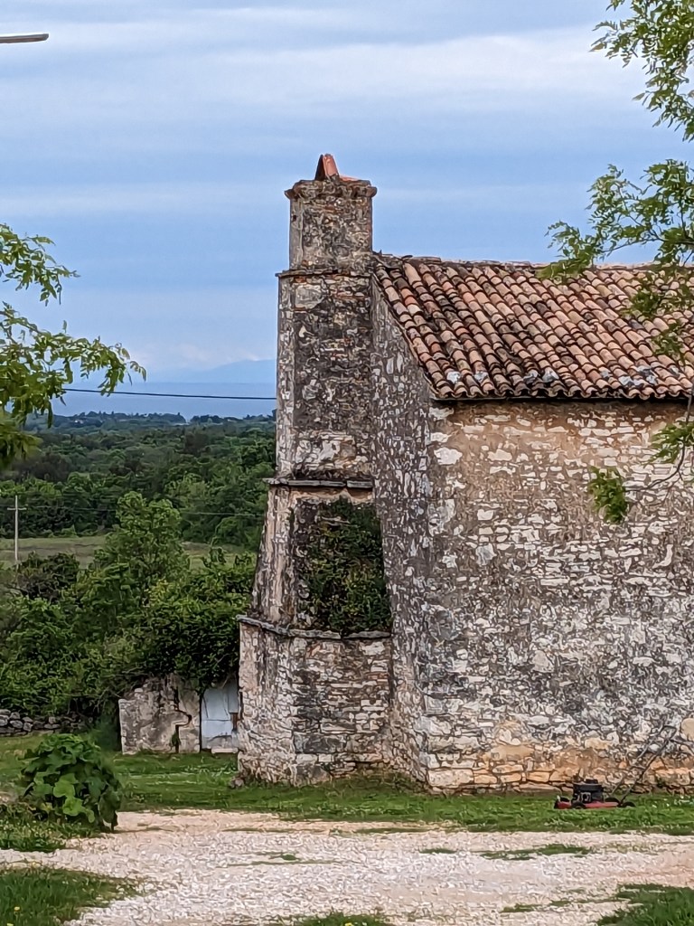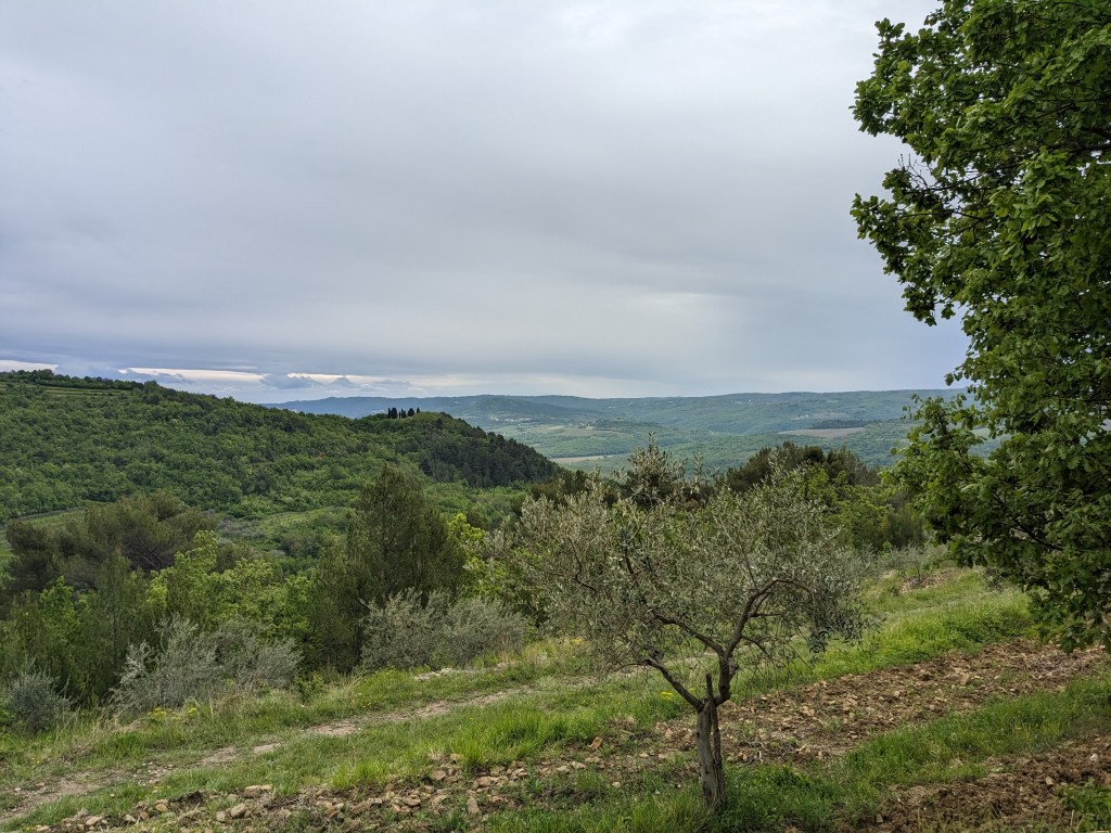 Both of us really wanted to see Istria. It doesn’t quite turn out to be what either of us expected but does turn out to be cracking cycling territory. The first day sees us taking a massive loop South East to avoid the airport, doing a long stretch of off piste down to a cove and back up again, then through rolling agricultural land through dotted villages, hedges abound, with lots and lots of new build houses, and lots of Slovenian registered cars.