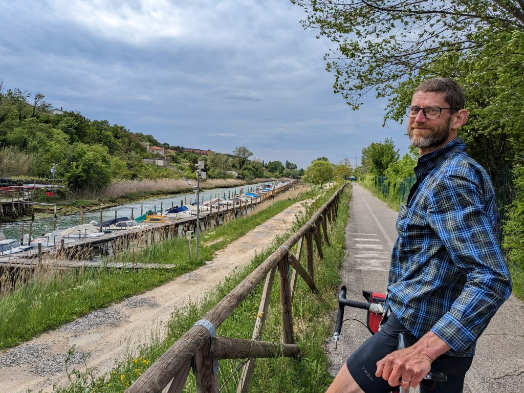 We wake early the next morning and pack up our slightly less soggy things and head back to the Parenzana. This takes us down to the coast for a country-hopping day as we leave Croatia, pop briefly into Slovenia, then on to Italy.